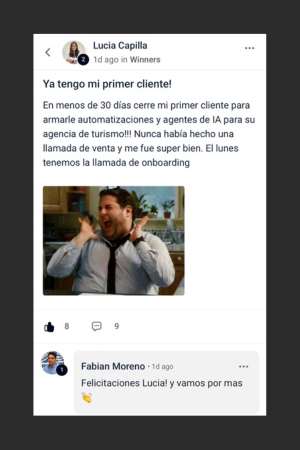 Es por esa misma razon, que únicamente con este programa vas a tener acceso a nuestros Coaches de éxito que te ayudan a encontrar tu camino para cerrar tus primeros 5 clientes.